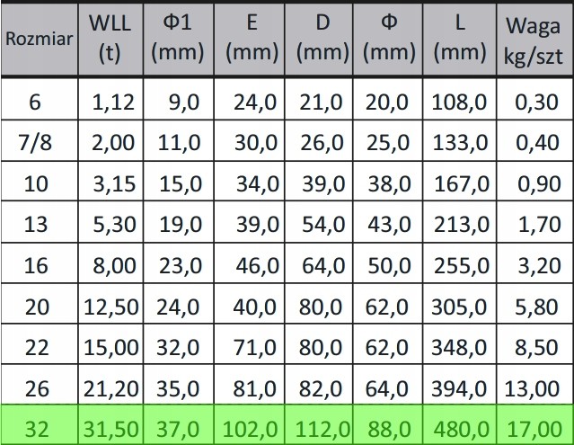 Rozmiar 32 nośność 31,5T