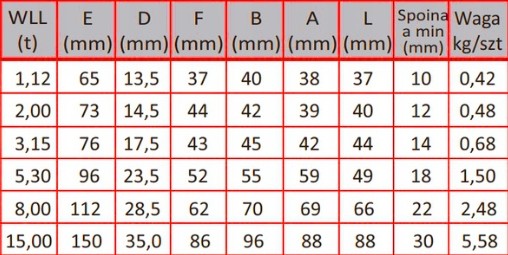 - Wykonany z: ogniwo ze stali stopowej klasa 8, korpus ze stali węglowej