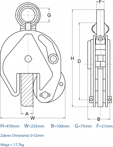 Uchwyt Zacisk Do Podnoszenia Transportu Blach 5t