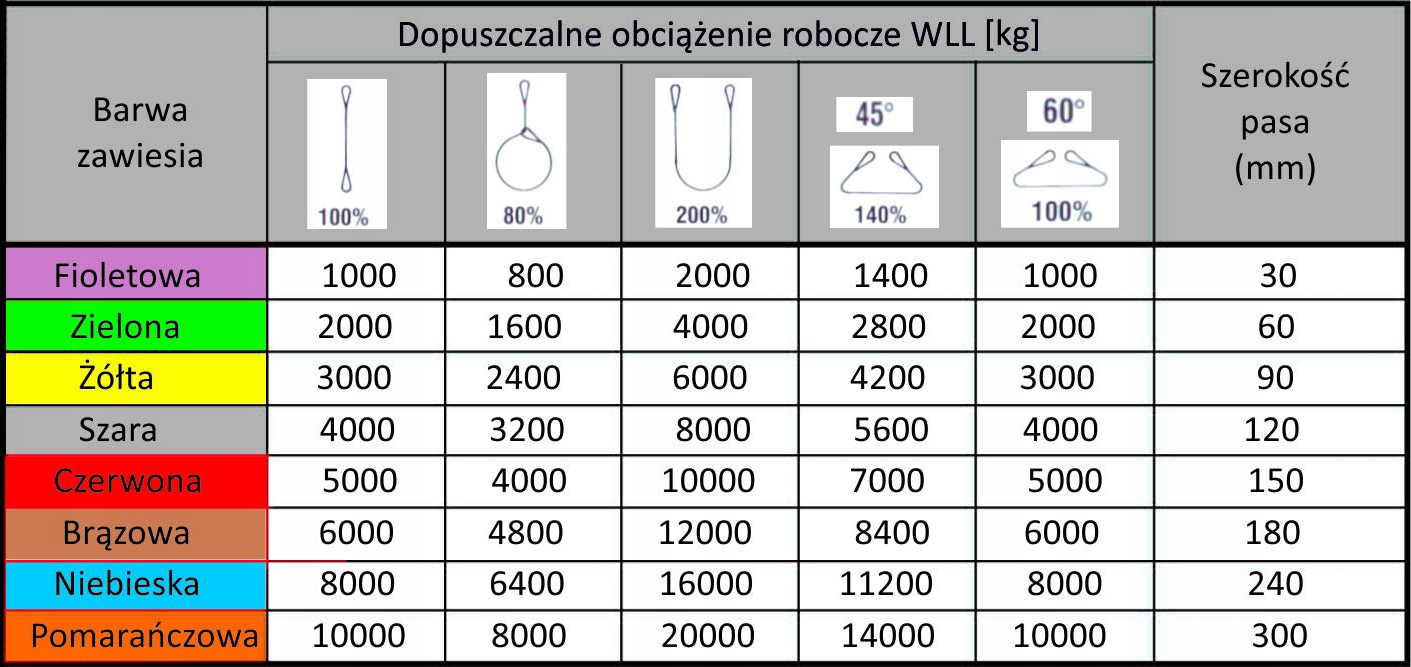Posiadają wszytą etykietę identyfikacyjną z nazwą producenta, nr fabrycznym, rokiem produkcji, znakiem CE, długością oraz dopuszczalnym obciążeniem roboczym.
